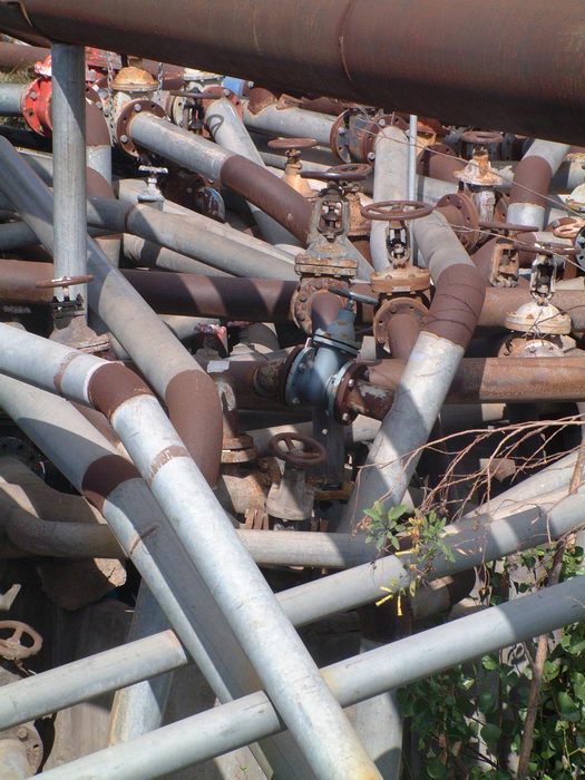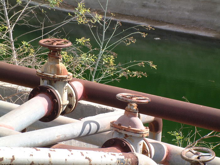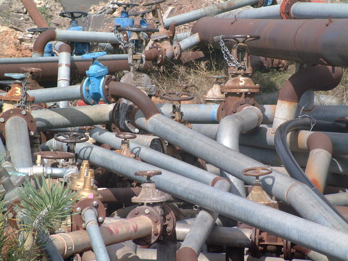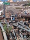 les tuyaux passent sous la route au travers d'un pont, et bien de