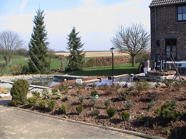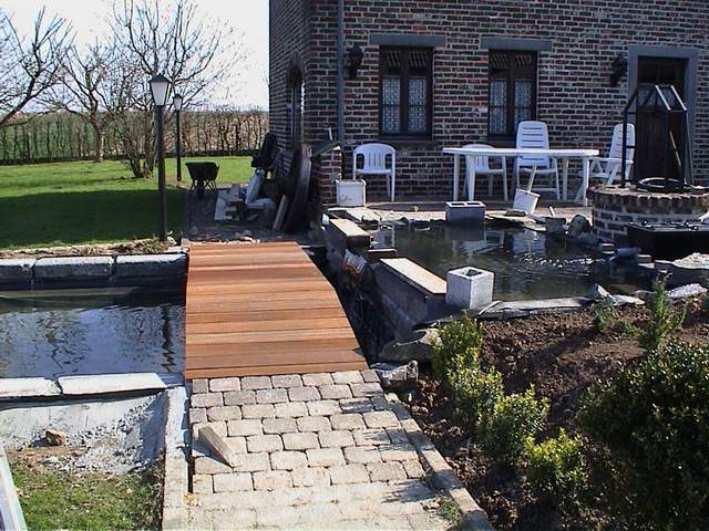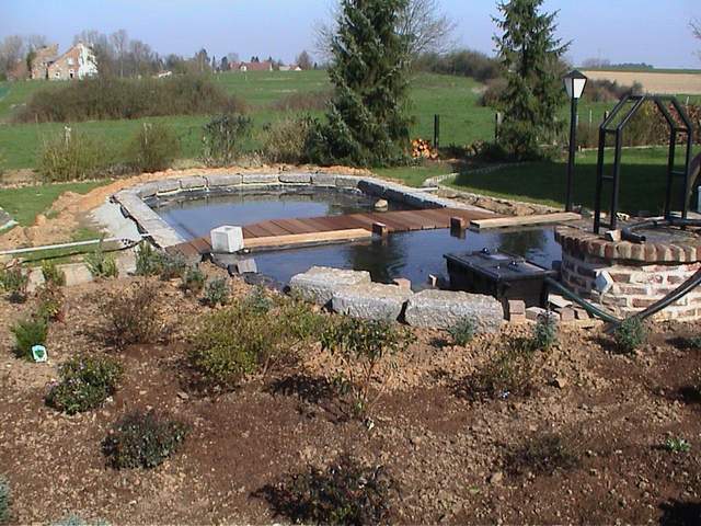 Le bassin supérieur et le pont sont terminés, nous sommes le 7/4/2000
