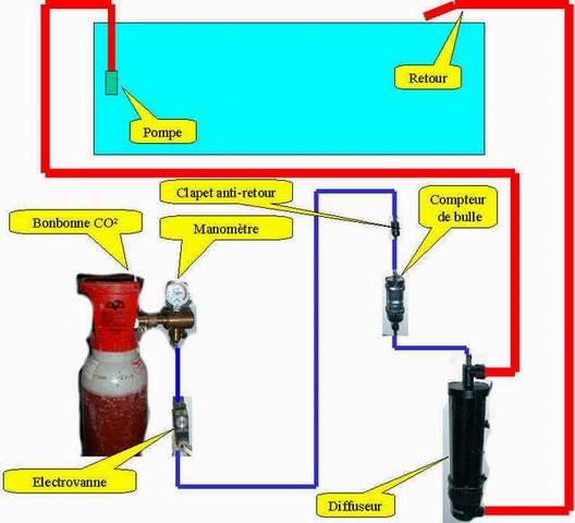 Ci-contre le schéma de connexion d'un système d'injection de co²