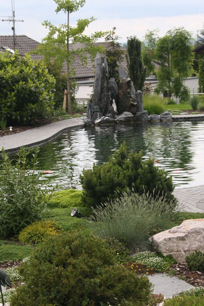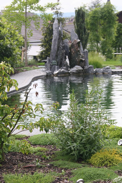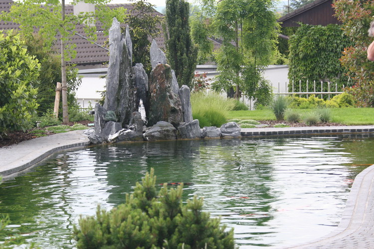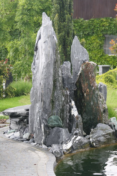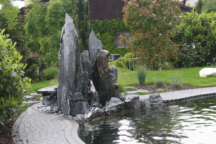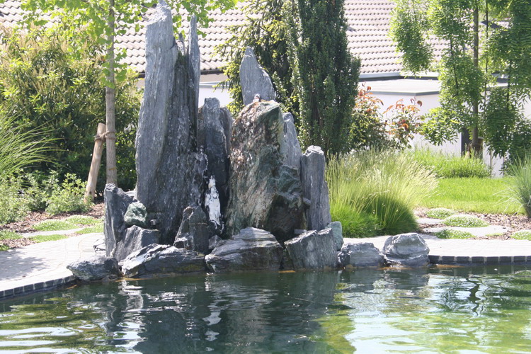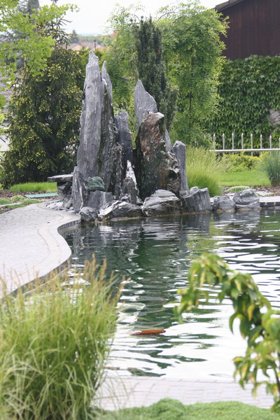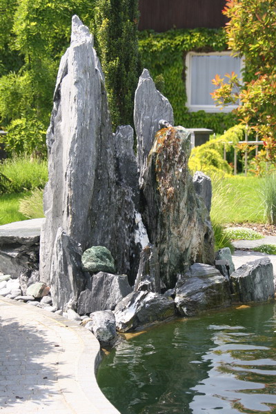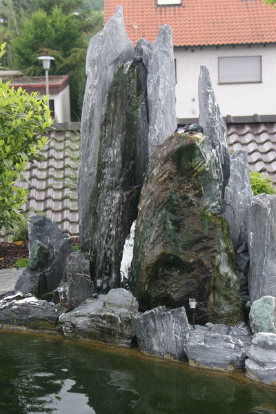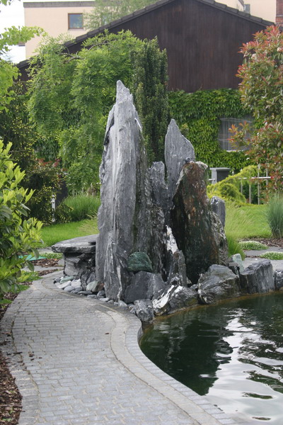 réalisé en polyester comme le petit bassin, une superbe cascade vient animer