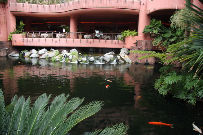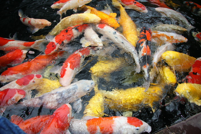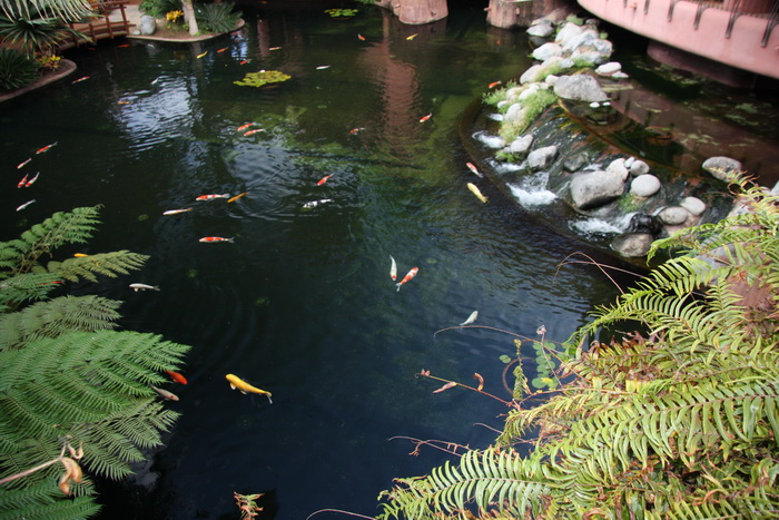 énormes carpes japonaises. Autour de l'étang, quelques restaurants dont un