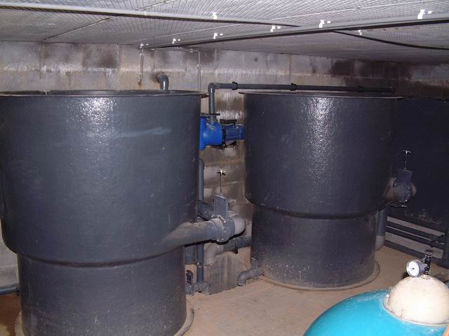 vortex alimentent chacun un filtre de trois chambres de 4m³. L'eau filtrée d'un