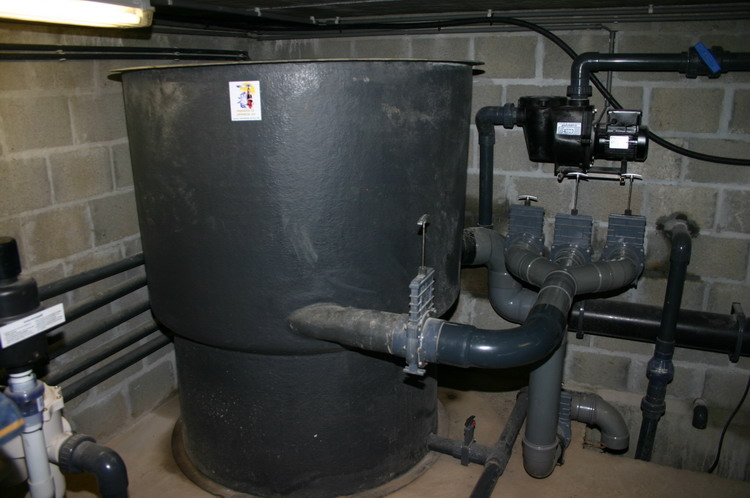 un filtre calculé spécialement pour ce bassin, un 4 chambres en gravité avec