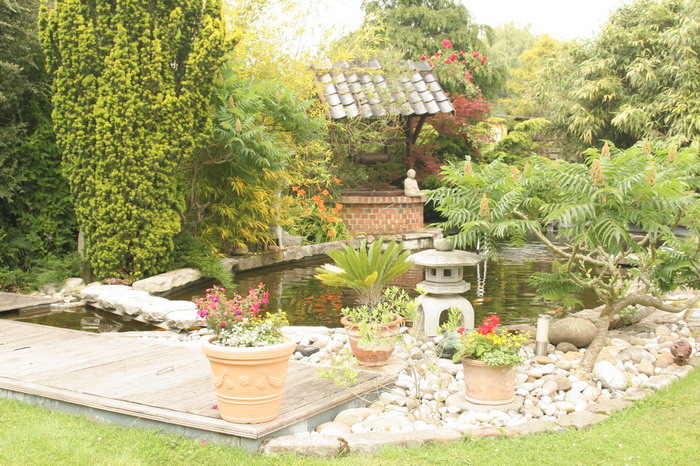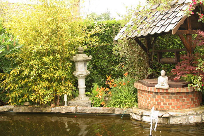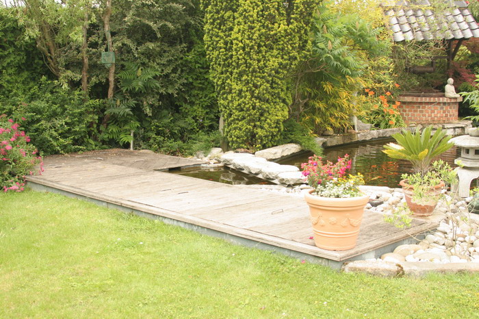 Ce bassin a eu le temps de devenir mature, les plantes environnantes en sont le témoin, très belle réalisation avec un intégration naturelle, un bon exemple d'intégration d'un bassin a koï