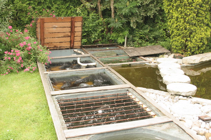 Un bassin à koï de 30 tonnes réalisé en polyester avec un superbe filtre fait maison également et de très grand capacité, mais vous entendrez Jean Marc commenter sont installation dans la vidéo disponible en fin de page, donc pas besoin de grandes explications, tout est dans la vidéo