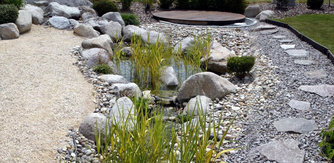 aménagée en jardin zen et enfin une autre partie du jardin est totalement