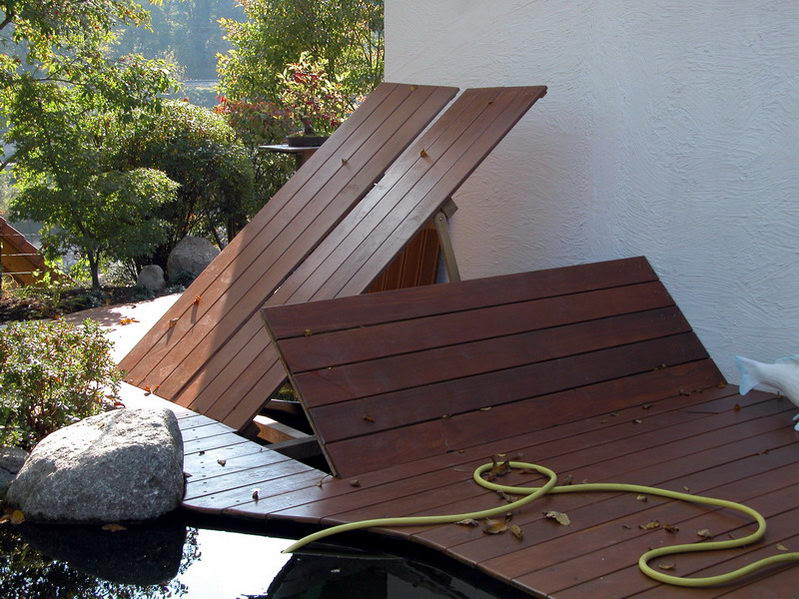 Un beau bassin nécessite une bonne filtration, une bonne partie du filtre à été placée dans la cave, le vortex à l'extérieur sous des planchés amovible ce qui permet un accès aisé