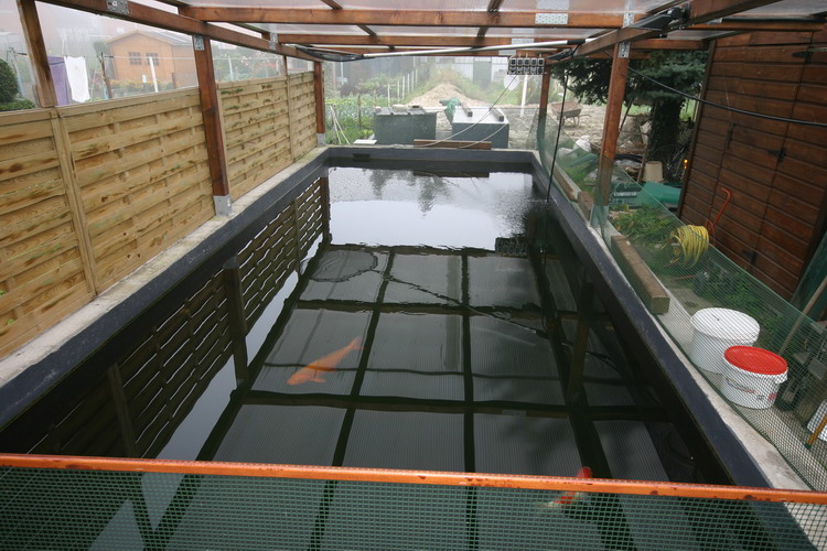 bassin très technique, un bassin à koï de 30 tonnes dans un jardin de ville
