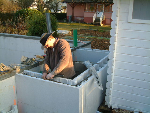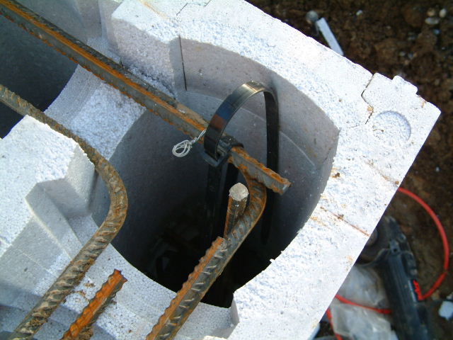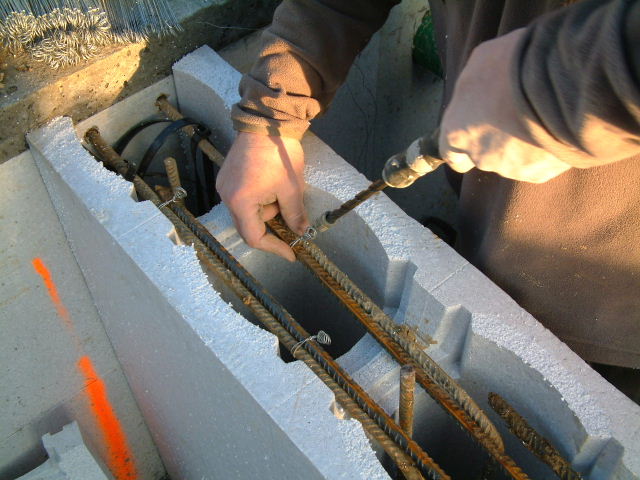détail avec les rilsans pour maintenir les blocs pendant le collage du béton |