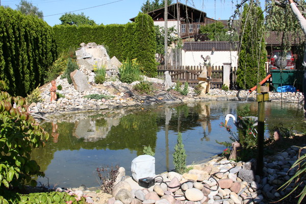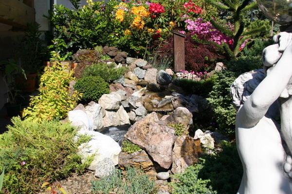 | Un bassin intérieur, un petit bassin de rocaille, un grand