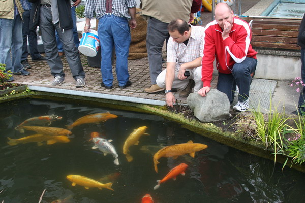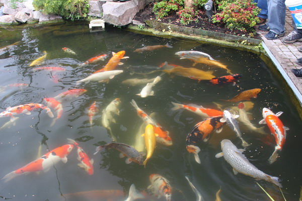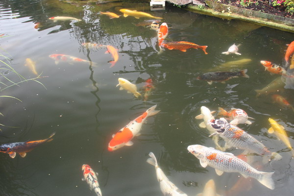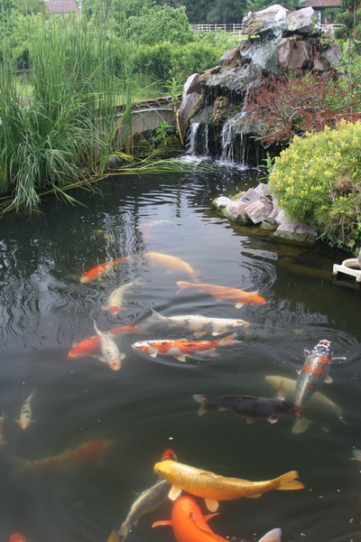 pied d'un bassin avec des koï de très grandes qualité vu leurs pédigré au