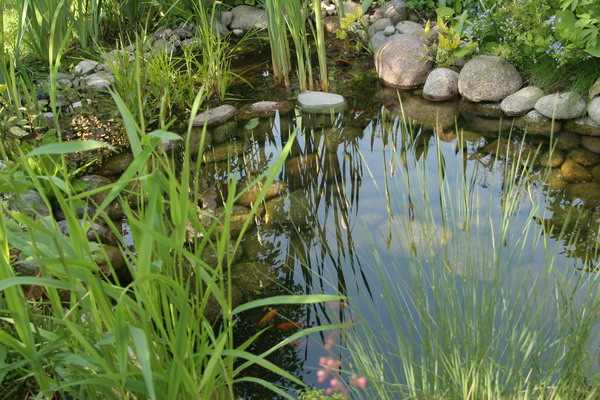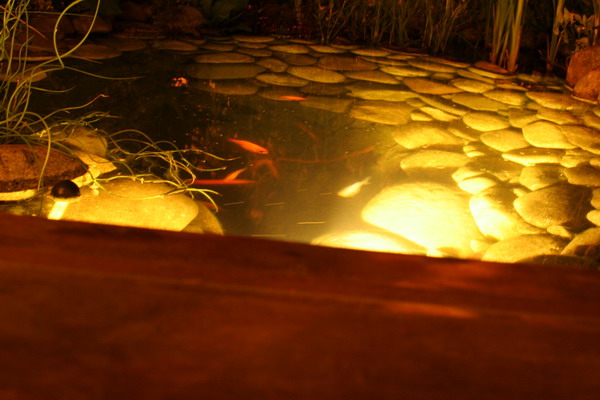 un éclairage doux permet de voir évoluer les poissons depuis la véranda,