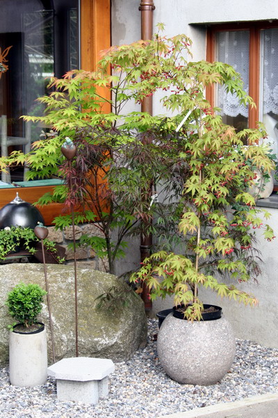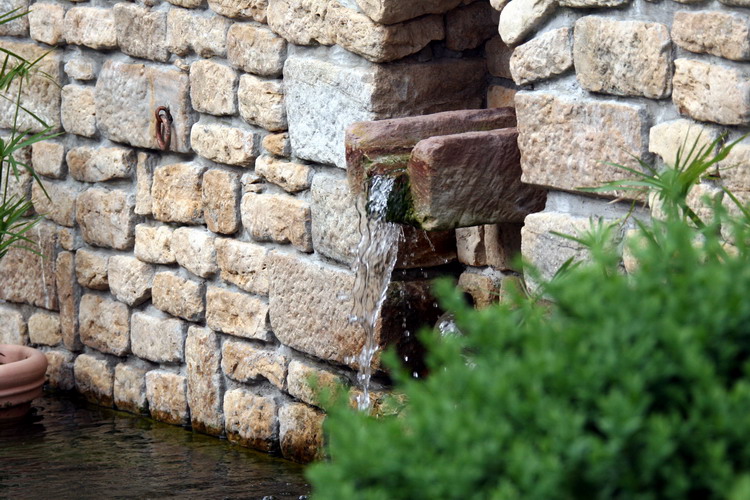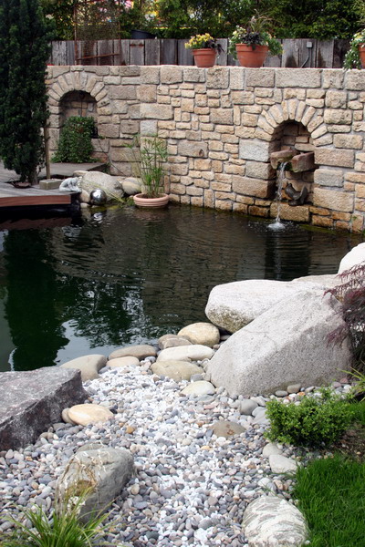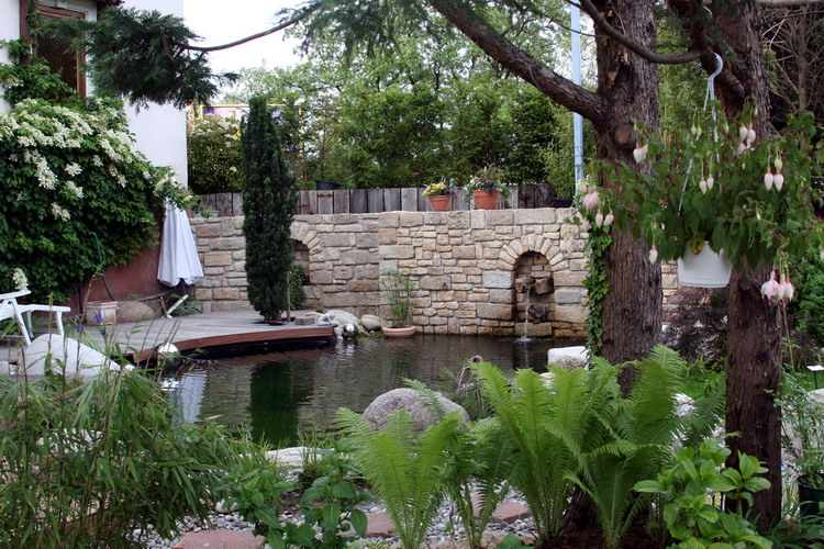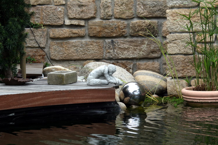 Le bureau est contigu a un superbe bassin à koï avec un mur de fond qui