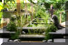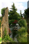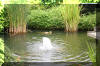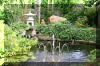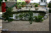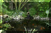 bâtiment avec une pièce d'eau au milieu et les bacs à Koï tout autour de la