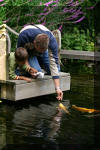 Le bassin à koï a immédiatement attiré du monde......