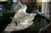 sont exposés des bronze dans une eau limpide ou des koïs y