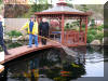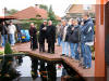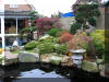 direction chez Koi San, arrivée vers 14h30, tout petit magasin, pas de matos, juste des koï, mais quel koï ! Et surtout, un superbe jardin à la japonaise, un jardin qui a vue de nez doit faire 5 ares, sans un brin d'herbes, bassins, terrasses en bois, bonsaï, un jardin japonais complet et d'une finition parfaite :