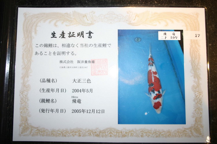 Diplôme du meilleur Sanke de l'auction de décembre que nous avons acheté ( Il