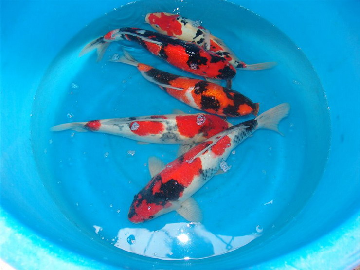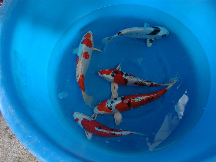 Nous avons finalement retenu 13 nisais showa, des sanke et kohaku et sept vraiment très beaux sansai et, en particulier, des showa d’environ 60 cm, 2 gin rin kohaku et 1 kohaku ordinaire.