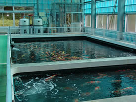 Quand nous nous rendons de l’autre côté de la rue, mes compagnons de route restent bouche bée d’admiration devant les merveilles de kois jumbo qui nagent dans la splendide serre.