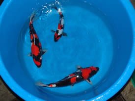 Dans ses bacs se retrouvent déjà de beaux exemplaires, dont nous en sélectionnons quelques-uns et, après les pourparlers, nous décidons de procéder à notre premier achat, un splendide gin rin showa & 2 mignons doitsu showas.