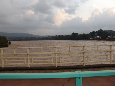 La rivère Shinano, que nous traversons chaque jour s'est transformée d'un courant paisible en un torrent d'eau brune dont le niveau atteint presque celui du pont.