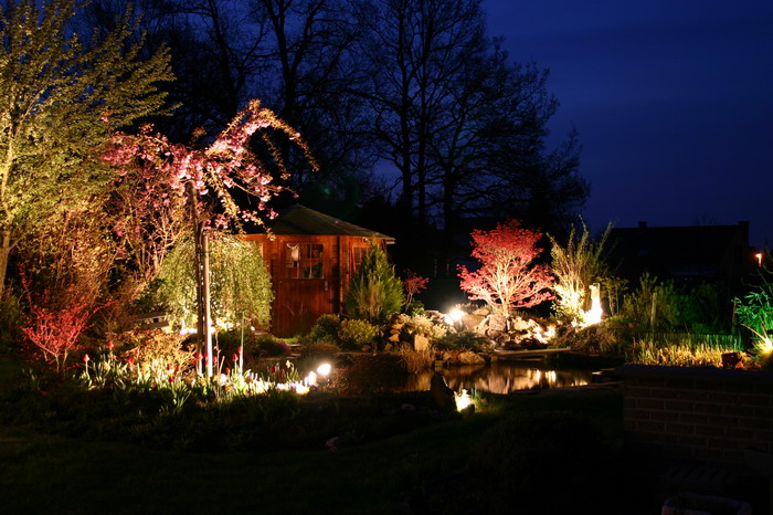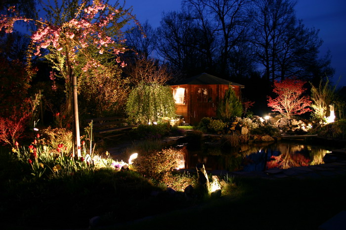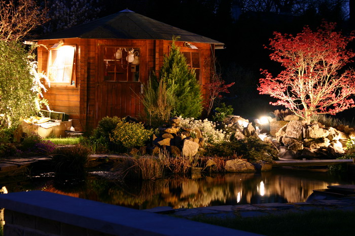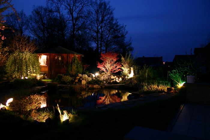 Le bassin paysagé d'Aquatechnobel la nuit 2