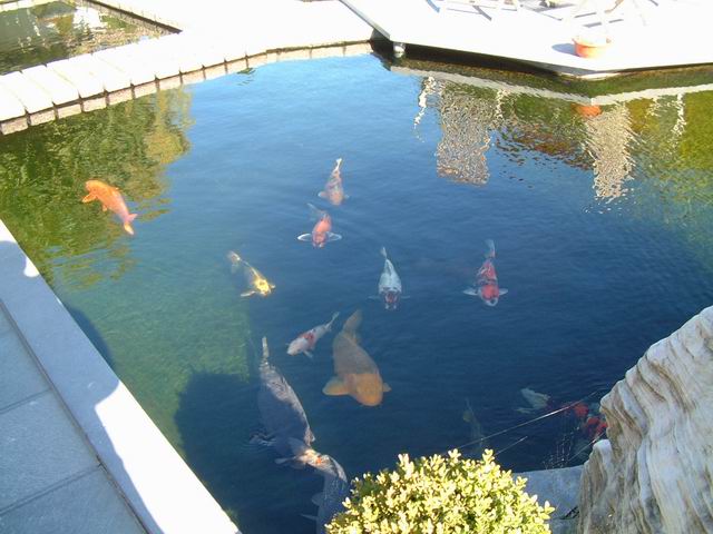 Le bassin a koi de Jean Marc superbe bassin à koi de 30 tonnes en polyester, gros filtre maison expliqué en détail dans une interview de Jean Marc disponible en vidéo en fin de page, du fait maison zt du très bien fait