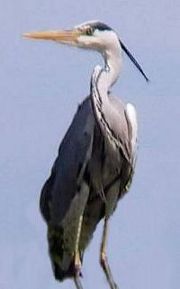 un long cou, un bec long et pointu et de hautes pattes. Le héron cendré