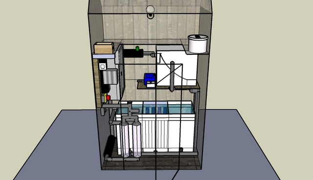 L'installation du pré-filtre à grille est prévue dans une cabane, il sera placé au dessus d'un filtre multi-chambres de fabrication maison également ...
