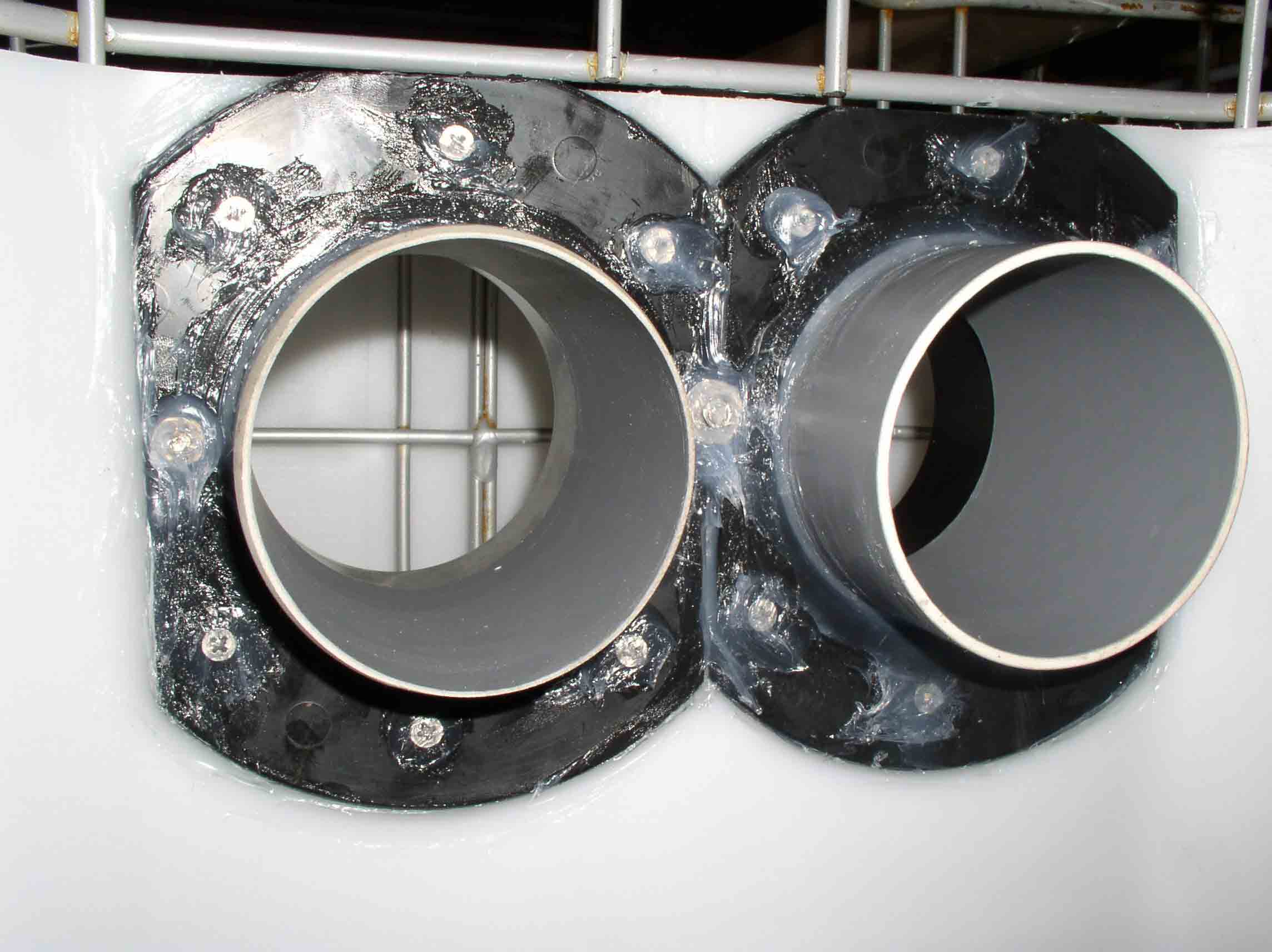 Les 2 arrivées de 50mm dans le cubi. Les coudes dirigent le