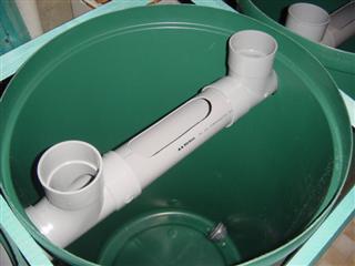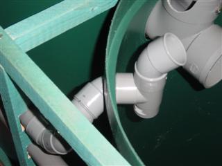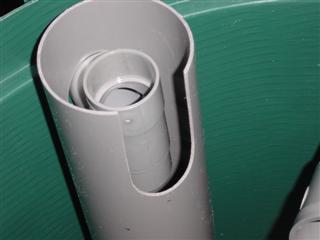Pour que l'eau arrive dans le bas de la cuve, un tuyau de 90mm est placé