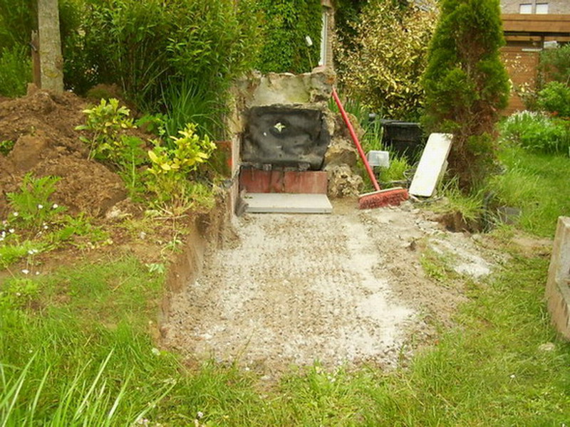 Puis nous avons posé sur ce fond 5 plaques de béton de 56 cm