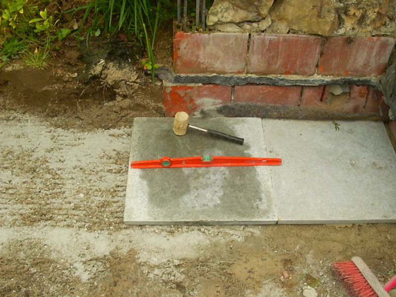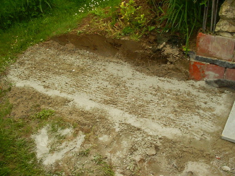 sable-gravier-ciment. On étale ce mélange que l’on passe au râteau pour le