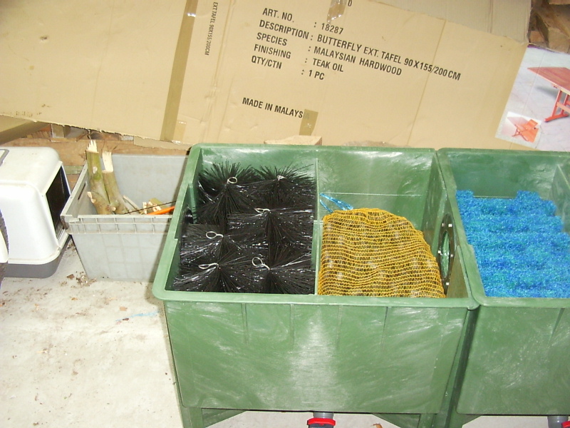 met un fond de flocors surmonté de 3 tapis de mousse de filtrage.
