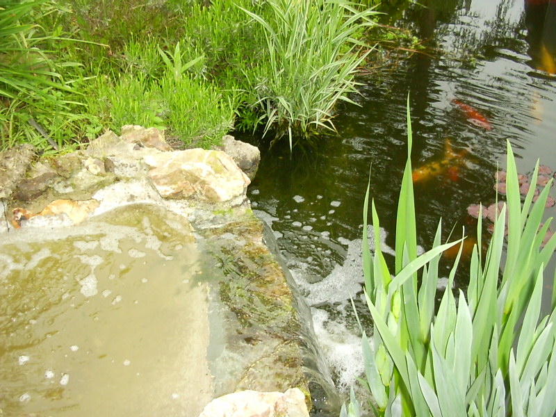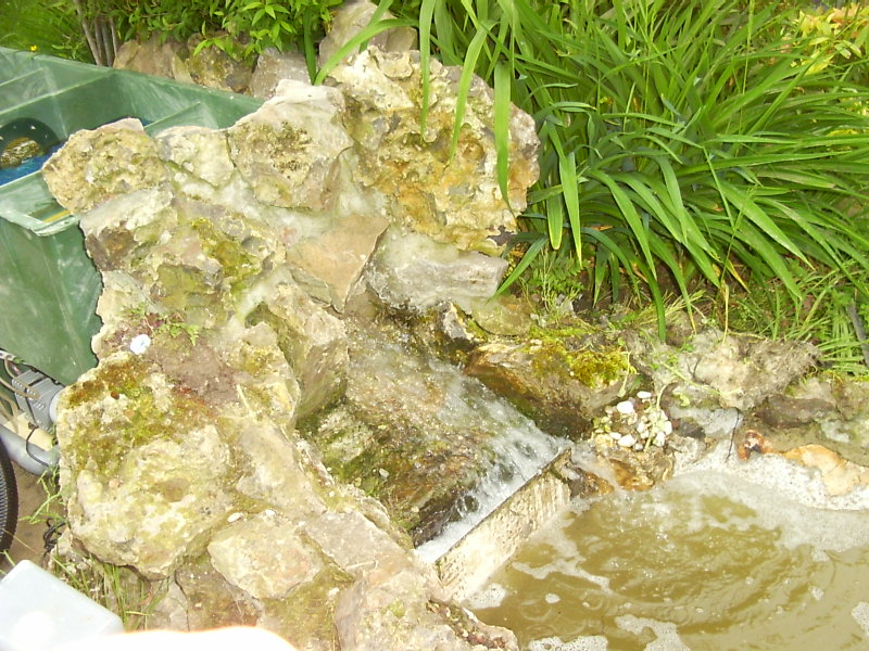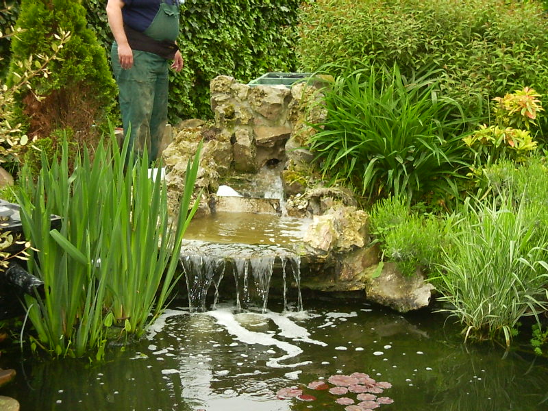 La cascade se remplit, le flux arrive dans l’étang avec une belle lame.