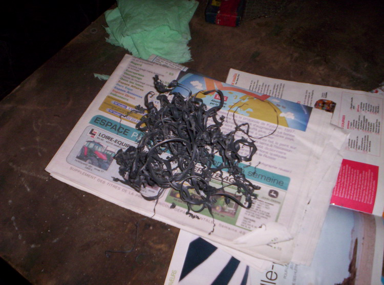 Voilà une nouvelle expérience n matière de création de média de filtration, en effet un moyen simple de créer une profusion de plastic en copeaux est de les passer sur un tours