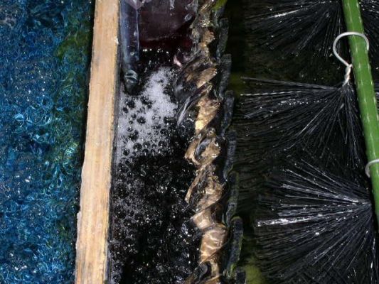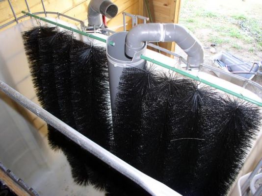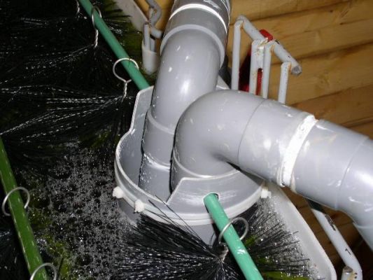 J'ai été obligé de rallonger la sortie des coudes vers le bas +/- 10cm à cause du "bouillonnement" de l'eau qui créée un débordement du tuyau d'arrivée. L'encoche sur le haut du tuyau est faite pour éviter un débordement (extérieur) en cas de colmatage des brosses, prudence...