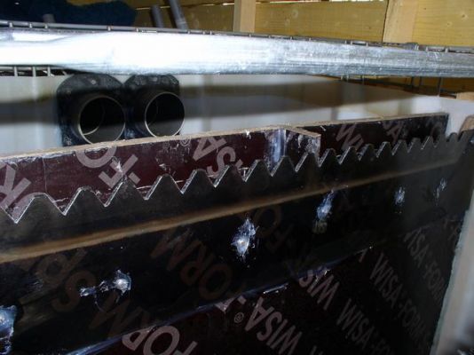 Découpe de plaques en plastic (???) en dents de scie de 2cm de profondeur et de largeur.