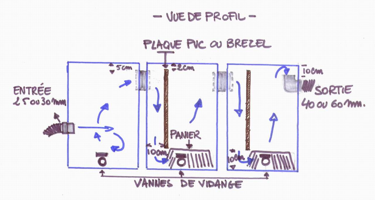 1 sortie de 40 ou 60 mm placée à 10 ou15 cm de la hauteur du dernier tonneau