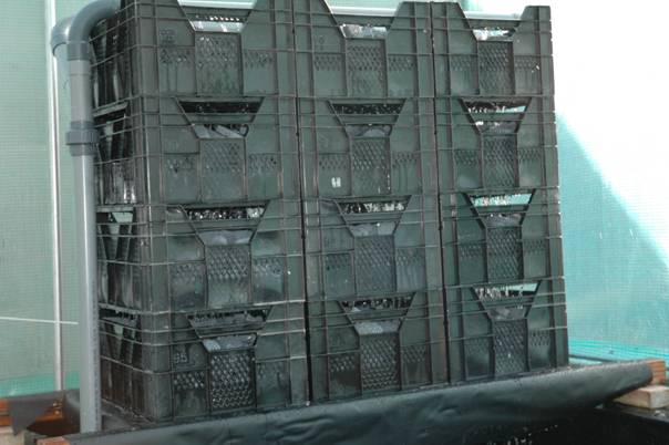 J’ai simplement remplie les caisses de céramique et empilé celle-ci sur plusieurs étages afin que