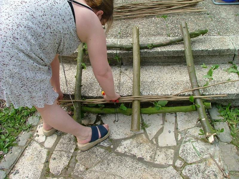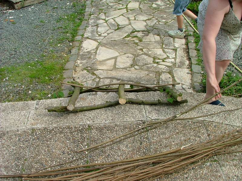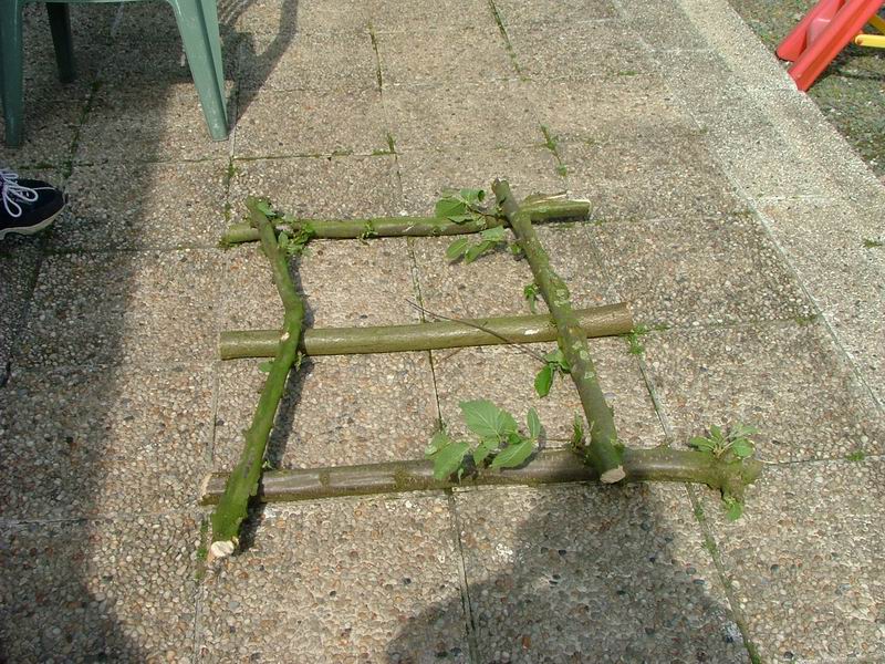 Il faut 3 bonnes branches pour les piquets, et 2 plus finne pour tenir le tout.