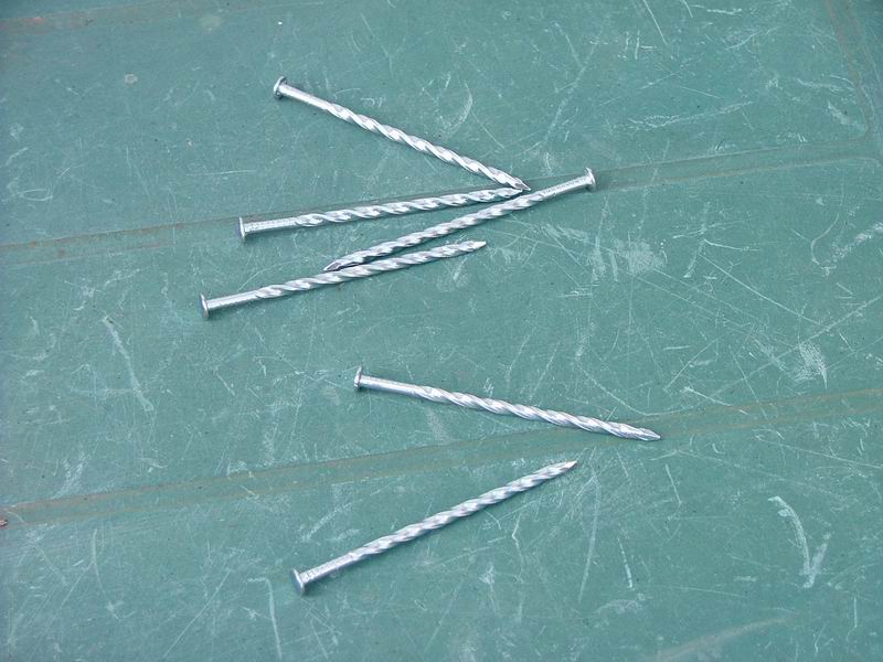 J'ai choisi des clous torsadés pour éviter de devoir préforer dans le bois pour éviter qui celui-ci n'écalte.