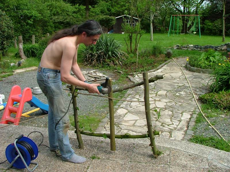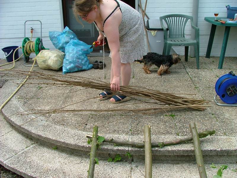 Pour cela, nous avons utilisé les gourmands de mes noisetiers. Il faut essayer d'utiliser des branches d'une section comprise entre 1 et 1,5 cm pour plus de rigidité.