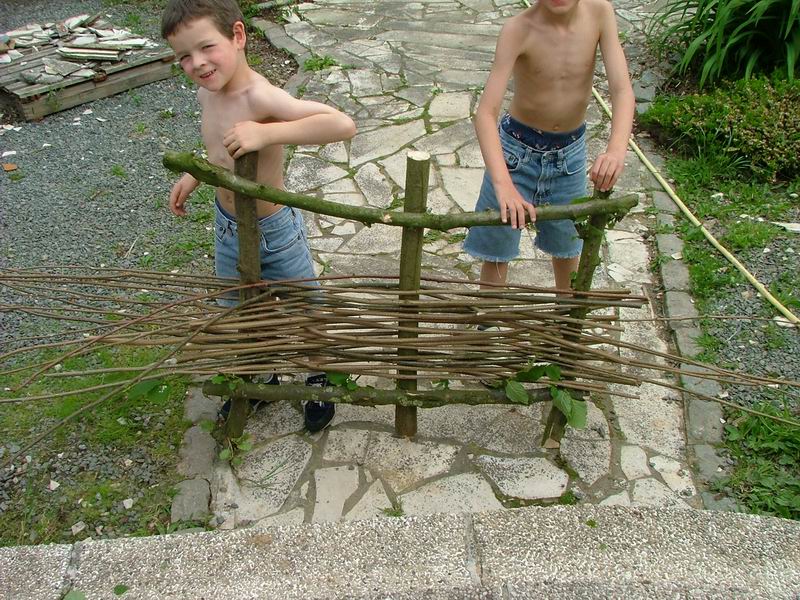 On tresse le noisetier en alternant les branches.