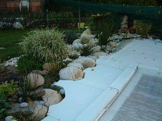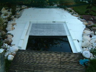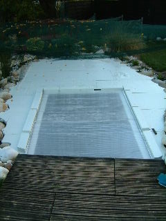 J'ai couvert mon bassin avec des plaques de styrodur de 50mm,a na pas confondre avec