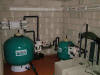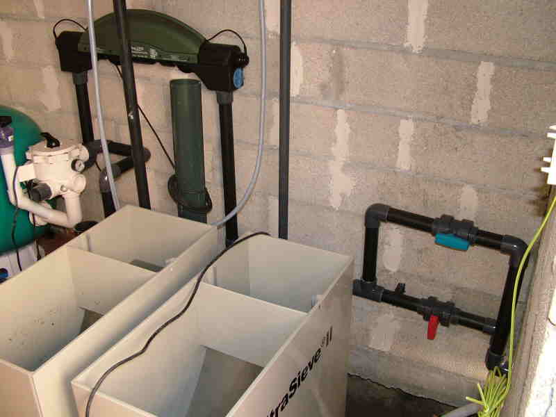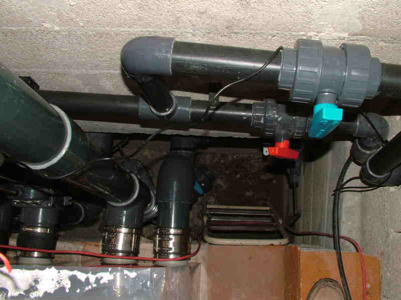 l'eau du bassin via une pompe ITT (16m3/h), un filtre, un UV (55 et 110W),