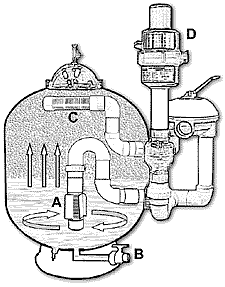 elle se bloque en haut du filtre, l'eau arrivant en A retourne au