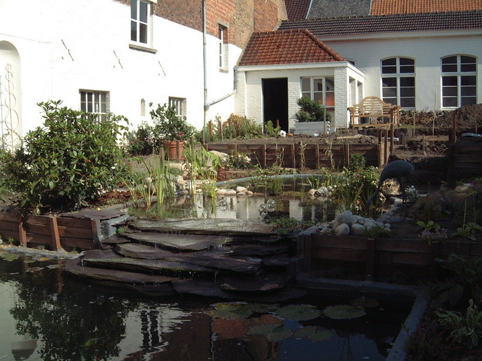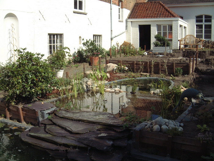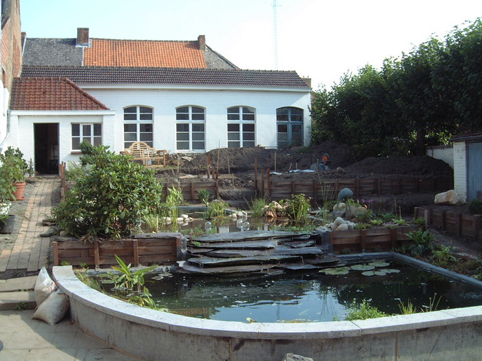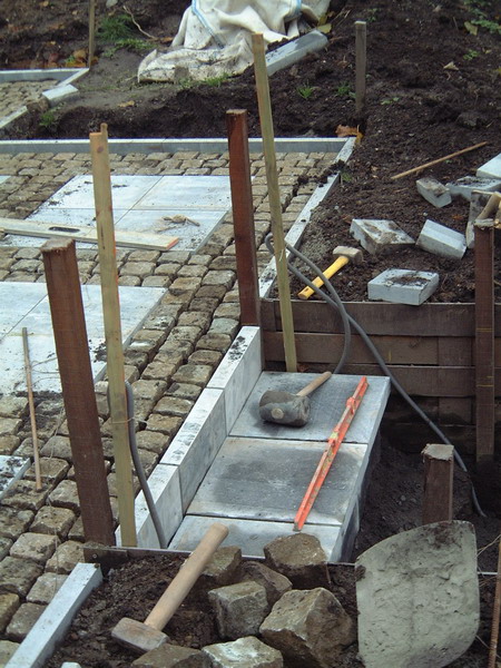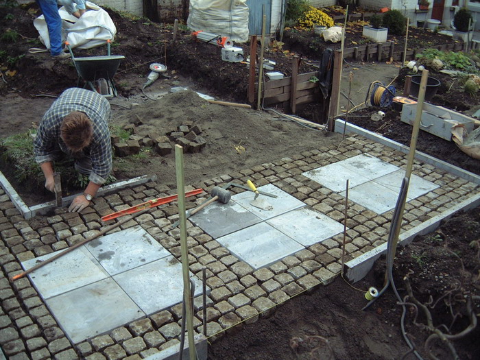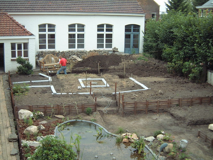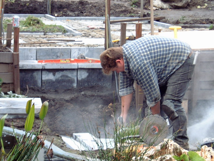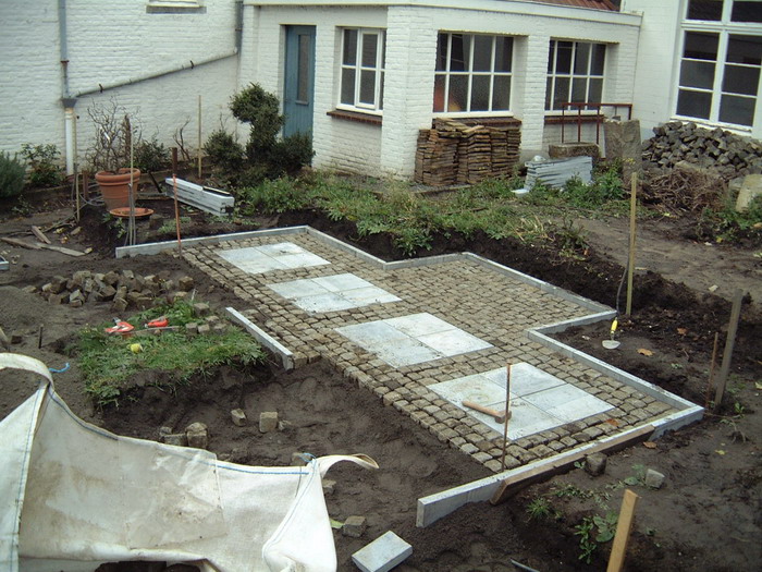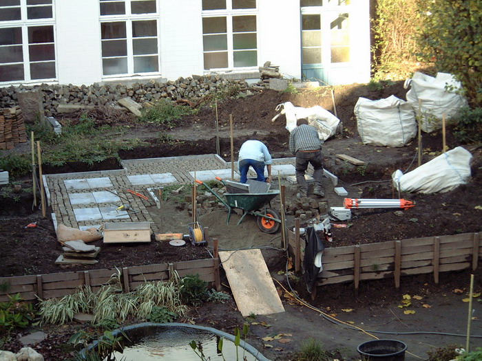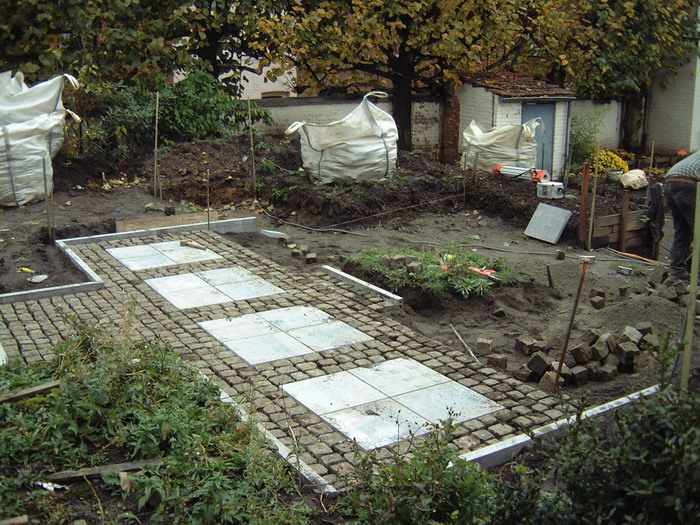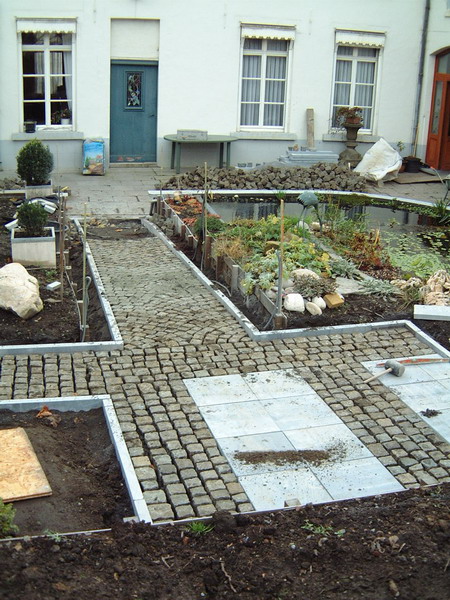 Après le bassin, viens le tour de la création des chemins en pavés, encore un gros travail qui donnera directement une vison de parachèvement de l'ensemble