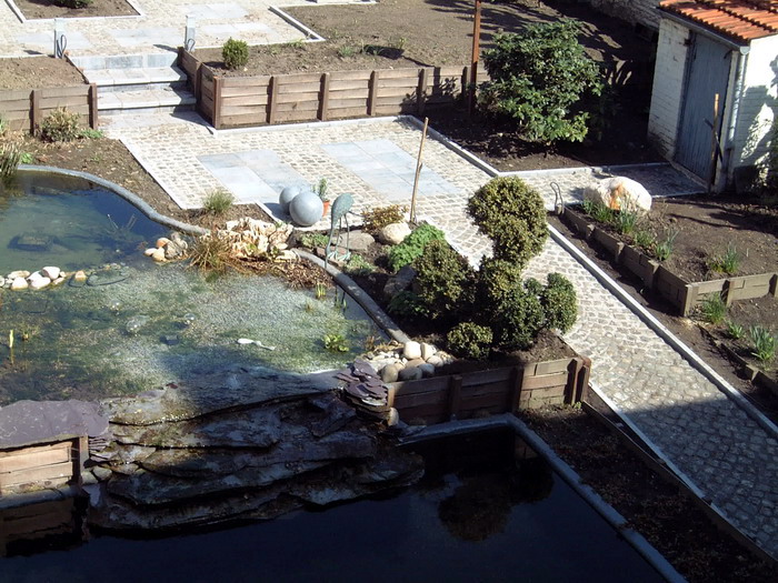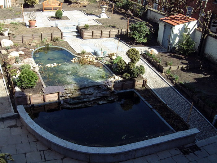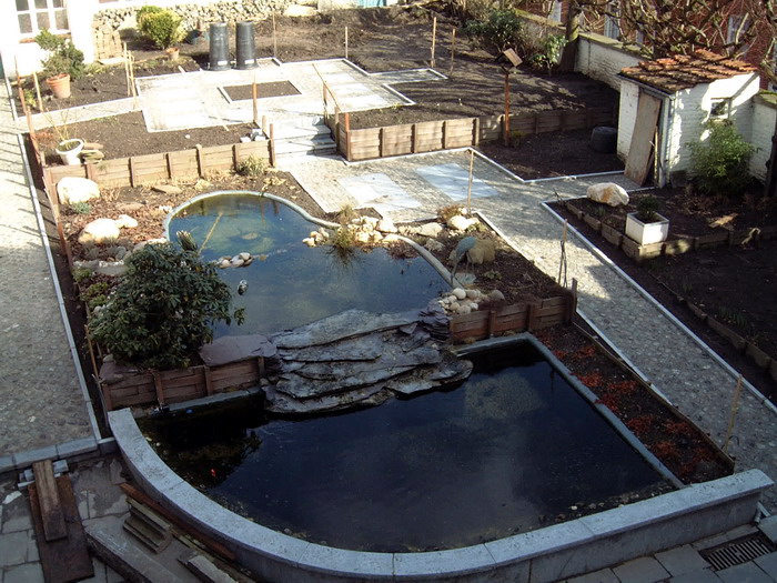 découverte du bassin terminé avec la mare de quarantaine intégrée